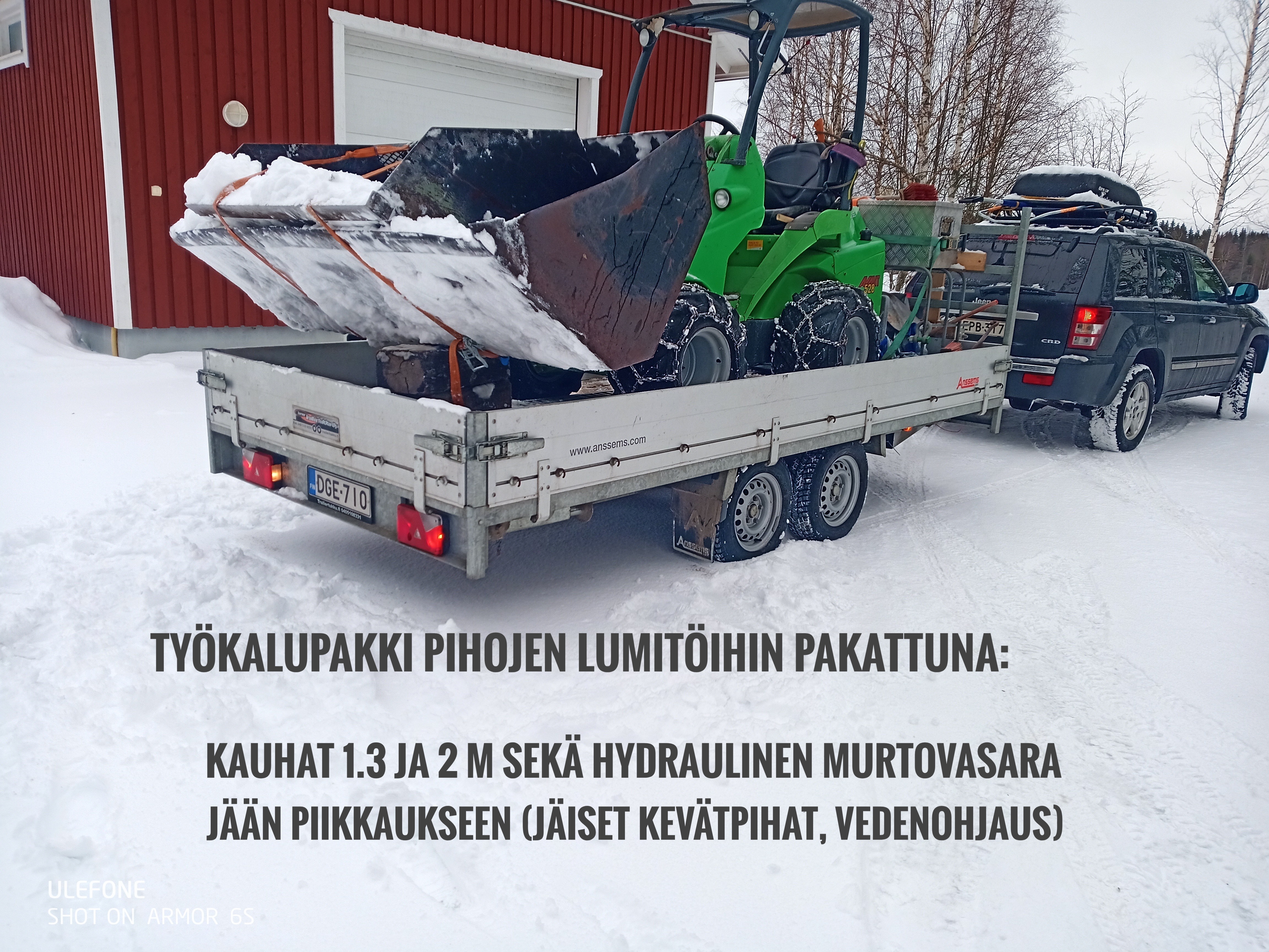 Kaikki työlaitteet ei mahdu kerralla kyytiin, joten yhdellä siirrolla ihan koko työlaitevalikoima ei siirry tontille, mutta melkein!